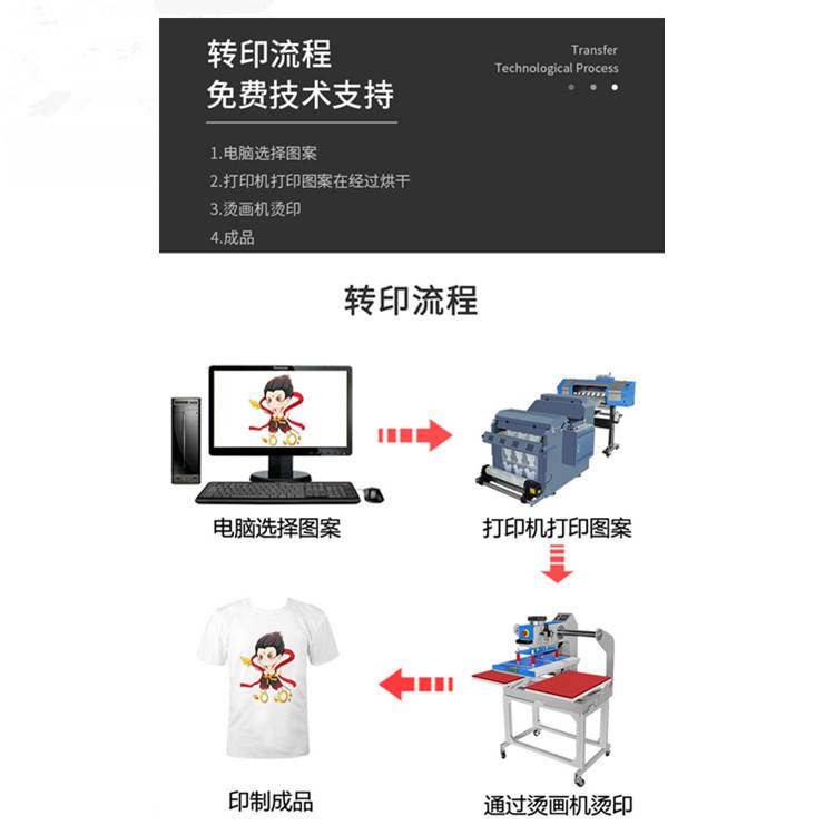 白墨直噴轉印燙畫優點: