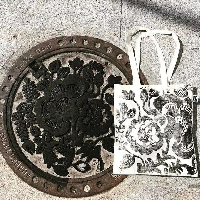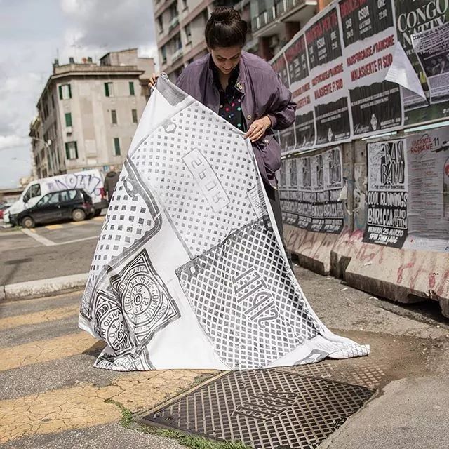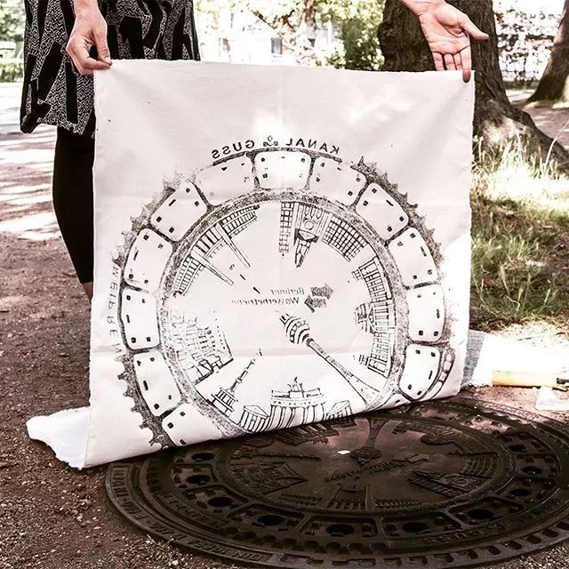 總部位于柏林的藝術團體Raubdruckerin (翻譯為海盜打印機)(之前)使用城市設計元素制作游擊印刷機,在井蓋,格柵和街道瓷磚上添加墨水,在T恤和包袋上創造實用的設計。實驗性印刷制作者將作品視為特定城市的足跡,目前的設計收集自阿姆斯特丹,雅典,巴黎,里斯本及其家鄉柏林。